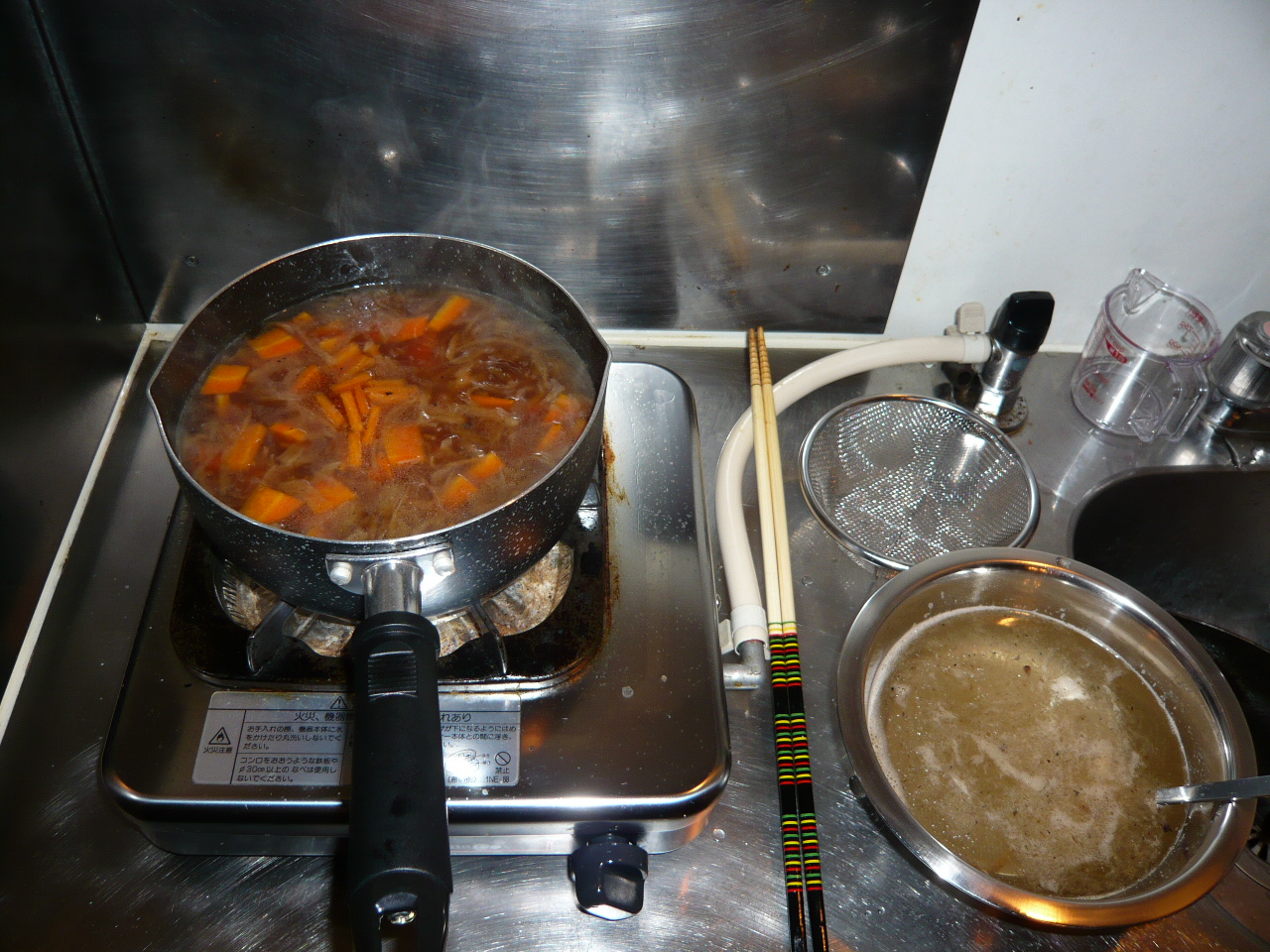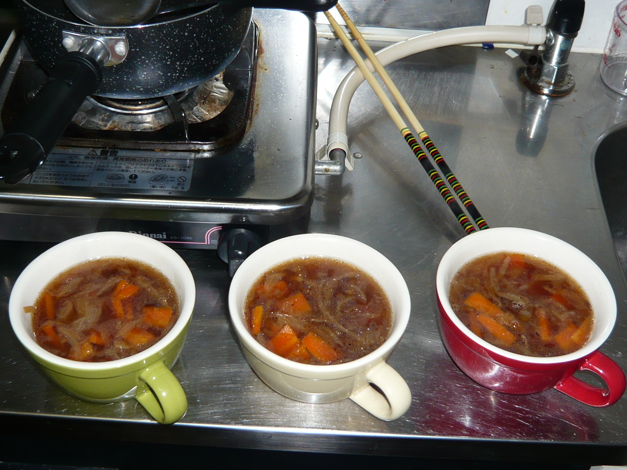 キャス「ここで人参も投入して、ブイヨンも入れます。」